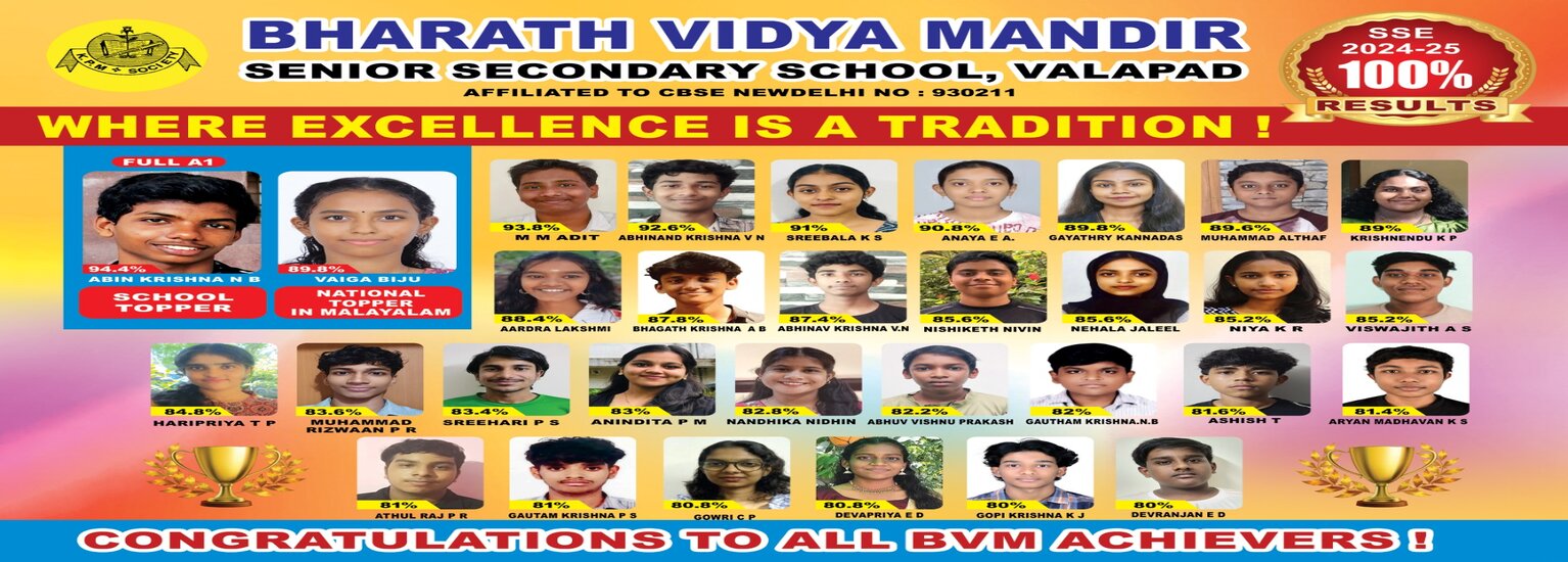 Bharath Vidya Mandir (BVM ) senior secondary School follows the CBSE English Medium Syllabus
